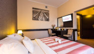 Dla Gości ceniących sobie wygodę i klasyczne wnętrza proponujemy pokoje Komfort z balkonem. Wyposażone są w eleganckie meble i wygodne łóżka stwarzają komfortowe warunki zarówno do pracy, jak i wypoczynku.